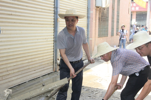 一方有难,八方支援。8月15日,高温酷暑,书院街道组织120余干部群众、动用车辆16台套,赴东山头灾后恢复重建第一线,帮助和天下循环产业园清淤泥、清垃圾、清障碍。充分发挥党组织战斗堡垒作用和党员干部先锋模范作用,让党旗在灾后重建中高高飘扬。