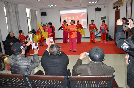 据悉,今天主题为“情暖冬至,喜迎元旦”的节目全部由社区的老年人自创,有快板、戏曲、舞蹈、歌曲等。而对于这一次演出,每个人都十分认真,一大早就来社区排练,想把最好的节目呈现给观众。