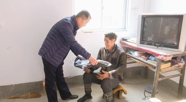 1月22日,书院街道北池社区维吾尔族居民代表阿拉江·佧马力拿着大米、食用油等生活物品,看望汉族贫困老人,了解他们的生活状况和实际遇到的困难。老人对这个特别的“维吾尔族亲戚”的到来表示由衷地高兴。