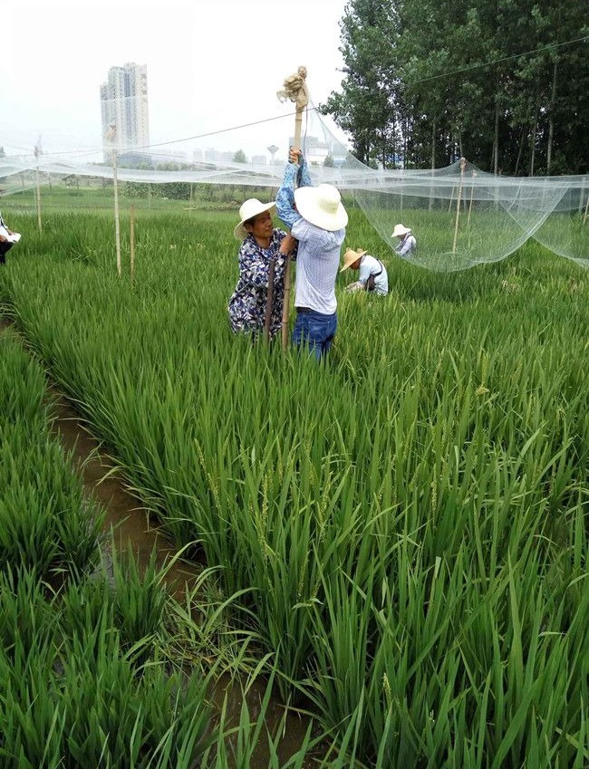 8月27日,孝南区农科所所长付成俊顶着烈日,冒着35℃的高温带领单位男同志给孝南香稻育种专家汤俭民的杂交稻制种和亲本繁殖做隔离,防串粉。今年汤俭民育种团队再创佳绩,培育的3个香稻品种——鄂香2号、红糯1A、红糯优36通过了湖北省农作物品种审定委员会审定。正是有香稻育种团队他们背后默默的付出,不计名,不计利,才有今天不断壮大的孝南香稻。