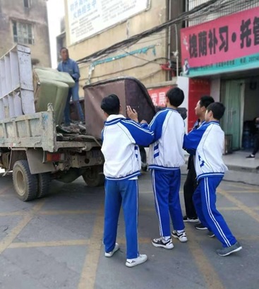 学生自发帮忙搬运杂物