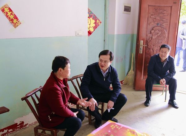 夏齐勇一行先后走访了迎凤村燕窝片区驼子岗贫困户胡登梅、邱家咀贫困户邱旺桥,详细了解贫困户家庭生活状况和扶贫政策落实情况。随后召开座谈会,听取了毛陈镇、迎凤村关于精准扶贫和软弱涣散村整改等工作情况汇报。