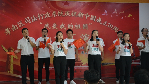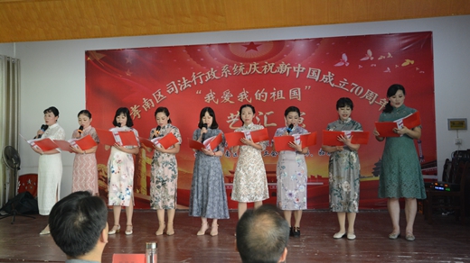 “歌唱我们亲爱的祖国,从今走向繁荣富强!”9月24日,在孝南区司法局全体人员起立合唱《歌唱祖国》的歌声中,孝南区司法行政系统庆祝新中国成立70周年“我爱我的祖国”文艺汇演划上了圆满句号。据了解,此次文艺汇演汇集了大小合唱、诗歌朗诵、歌舞、古筝、太极刀等节目,全区司法行政系统110余名人员全部参与演出。
