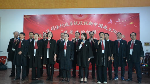 “我是中国人,我爱我的祖国!”“祝福我们的祖国越来越好!”“祝祖国母亲70岁生日快乐!”……活动结束后区司法局干部们大声说,热烈气氛久久没有散去。