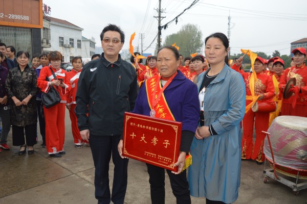 10月16日,细雨纷飞,孝南区毛陈镇焦湖社区居民黄远珍家门口,一阵锣鼓声热闹了整个村庄。被评为孝感市第十届十大孝子的黄远珍,满脸喜悦地接过市卫健委副主任郑佑保送来的“十大孝子”奖牌,现场响起了热烈的掌声……