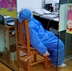 在备感煎熬的情况下,她坚持接待门诊发热患儿,给住院患儿量体温,写记录,处理病房的琐事等等。工作结束后,为了防止感染其他同事,她还特意用消毒水把办公室、治疗室、值班室都消毒了一遍。忙碌了一晚上的她,在早上同事来接班时累倒在了椅子上。