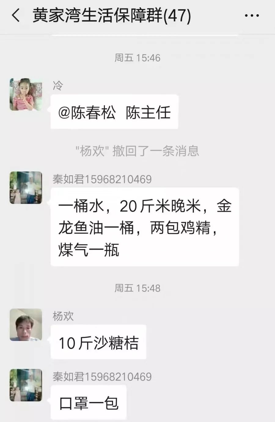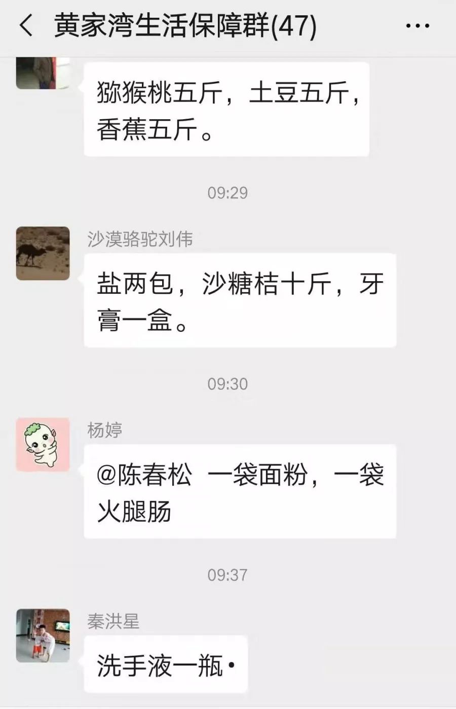 1月31日,浐川村黄家湾疫情防控生活保障群里,不时有居民发布生活物资需求。