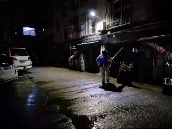 2月6日晚,广场街道应孝感市市政府决定,对辖区进行全域消毒同时重点针对三无小区。各社区工作人员组成的防疫消毒队,他们肩背喷雾器,手持喷雾枪,来回穿梭在公共场所和居民小区楼宇通道内,喷洒防疫用84消毒药配剂,整个消毒工作一直持续到凌晨。(责任编辑:李文艺)