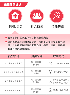 2月15日,湖北省心理健康服务平台上线,着眼“科学规范、权威专业”,整合省内权威心理援助热线资源,集结千余名心理专家学者,24小时在线,提供免费疫情防控相关心理援助,助力打赢全省疫情防控阻击战!