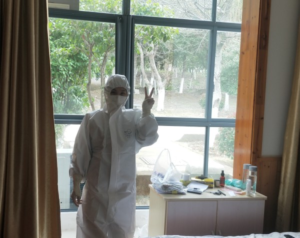 96年出生的周丹是毛陈卫生院的一名护士,她瞒住家人在抗疫之初就申请到一线,从2月5日进驻新建源留观隔离点至今,已累计服务了63名隔离人员。