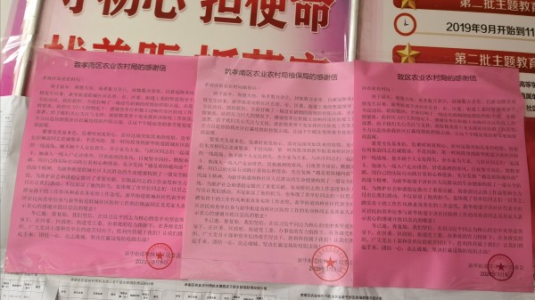 在3月初,疫情形势逐渐向好的日子里,我局收到了新华街道的写给我局派驻新华街道突击队员们的感谢信。