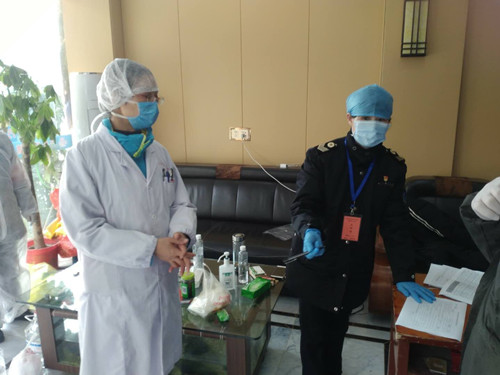 有一次,上级督查落实《17号令》的情况,准备进村时,杨班长喊道:“且慢。”让一行的三个人面面相觑。杨班长一手拿测温枪,一手拿酒精喷壶,经过了检查、测温、消毒、登记程序后,还对车辆轮胎喷洒84、门把手喷洒酒精消毒,才放行入村。