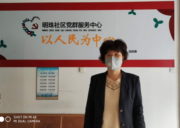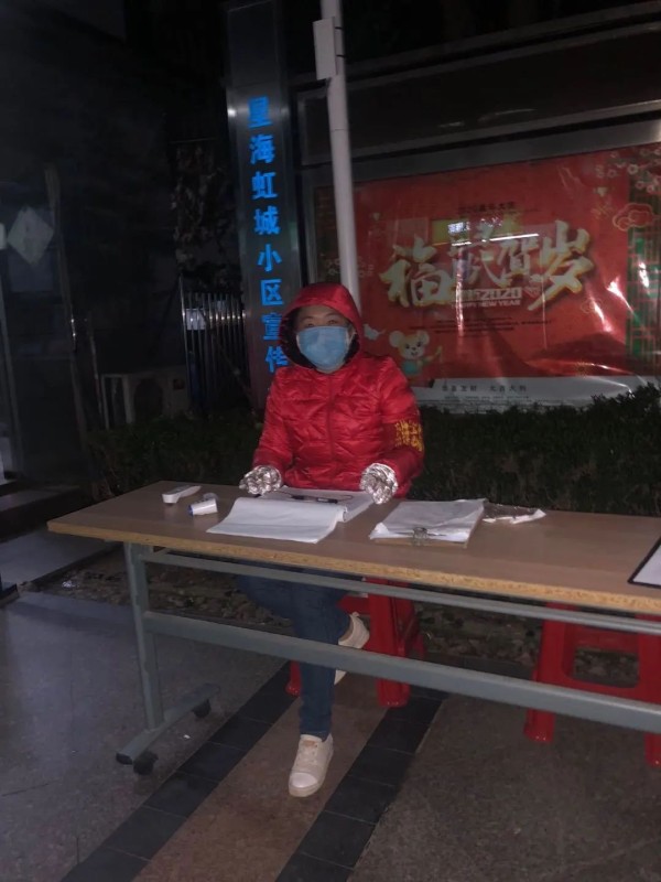 在深圳市明珠社区,法院干警徐翠芳就近向社区报到,参加防疫工作。