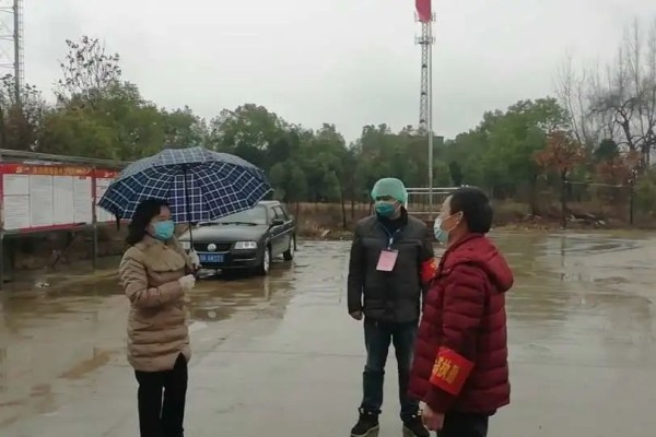 在荆门市子陵铺镇,法院干警严瑛就近向村民委员会报到,在当地村镇开展防疫工作。