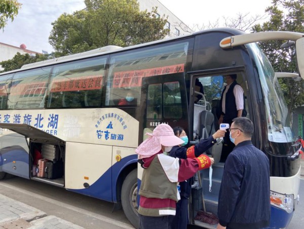 组织人汪先生临上车前说道:“从办手续到发车,仅仅一天的时间,感谢工作人员,晚上9点还在为我们办理相关证明,今天还为我们送上暖心口罩和体温计。”