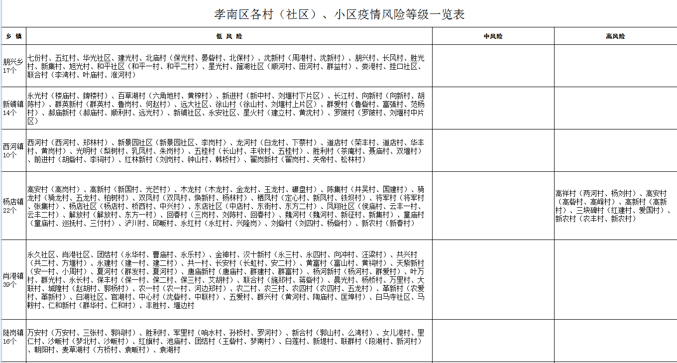 附件:《孝南区各村(社区)、小区疫情风险等级一览表》