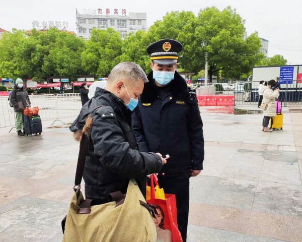 根据《湖北省新型冠状病毒感染肺炎疫情防控指挥部通告》、《中国铁路武汉局集团有限公司通告》精神,以及市、区两级指挥部的决策部署和防疫工作要求,孝南区城管执法局严格按照“外防输入、内防扩散”的工作要求,每天派出8名执法人员,在孝感火车站防疫工作专班的领导下,实行24小时轮班值守,积极协助站内工作人员对进、出站人员采取查验“湖北健康码”、测温的方式,逐人进行甄别,确保进、出站人员的健康安全。针对少数老人和婴幼儿不能出示健康码,及时查验出发地是否开具有健康证明,确认后登记拍照、测温后予以放行,有效保障了进、出站旅客安全、便捷、高效。
