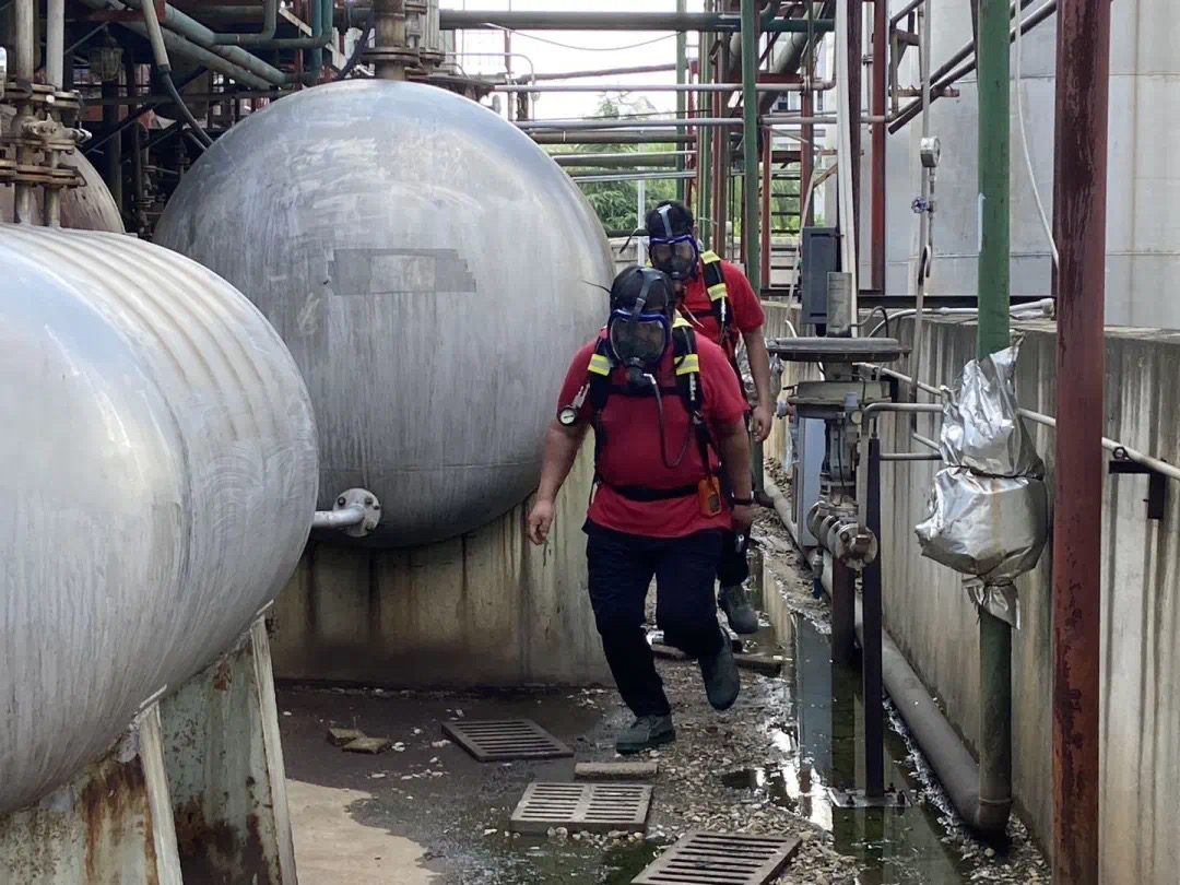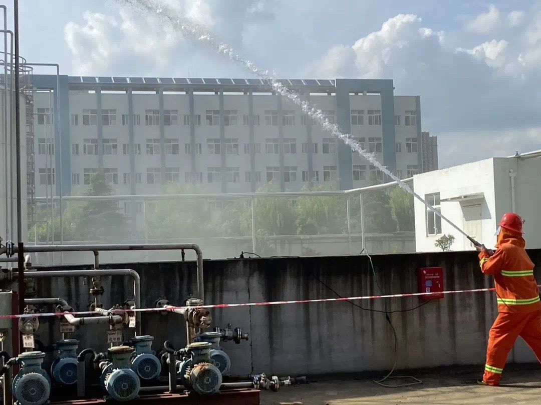安全生产咨询日的第二站是孝感市易生新材料有限公司。该公司组织开展员工岗位安全宣誓和危险化学品泄漏着火事故应急预案演练。该公司模拟储罐区1号回收乙醇储罐排料口管道发生泄漏和应急处置的过程,通过演练检查应急预案是否科学、完善,检验公司各部门在储罐区危险化学品泄漏事故应急处置中履行职责及协同配合情况,并随之进行完善和改进。