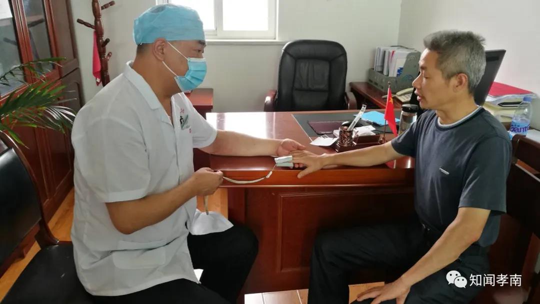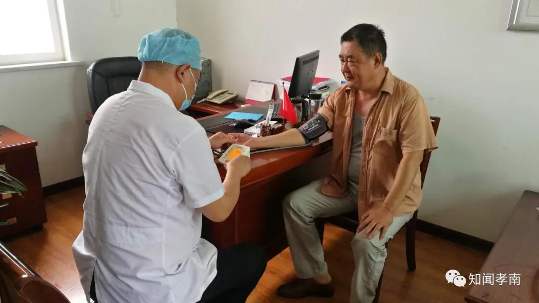 “你的血压稍微有点高,不过不用紧张,注意休息。”7月15日,孝南区书院街道社区卫生服务中心主任陈力对河口防汛指挥所干部魏志林量完血压后细心叮嘱道。