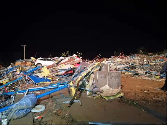 5月14日20点39分,武汉市蔡甸区突发龙卷风,部分村湾房屋受损,大量树木折断,部分工棚倒塌,有多名人员受伤。受龙卷风影响,通信光缆、电缆部分损毁。中国移动湖北公司第一时间启动应急预案,冒雨奋战、连夜维修,全力保卫通信生命线。