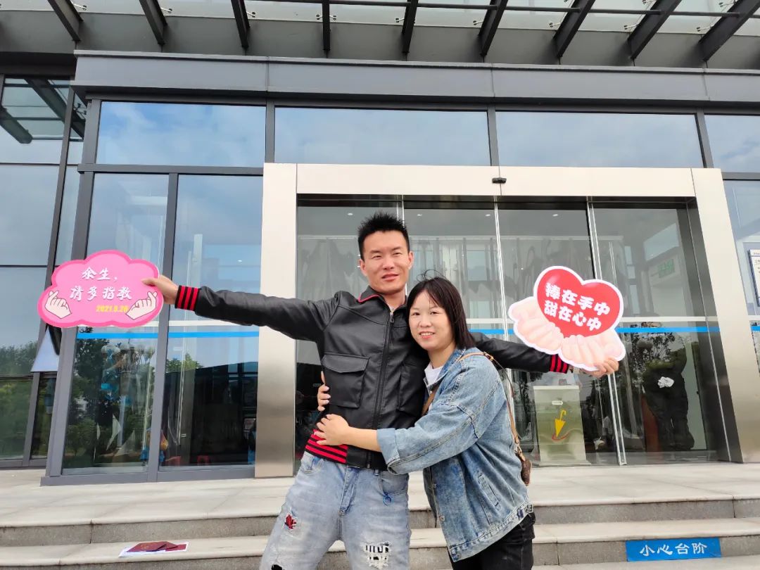 “今天我们结婚啦!以后余生,请多指教!……”新人们手举各种创意十足的爱情牌,纷纷在镜头前留下属于两人的幸福一刻。