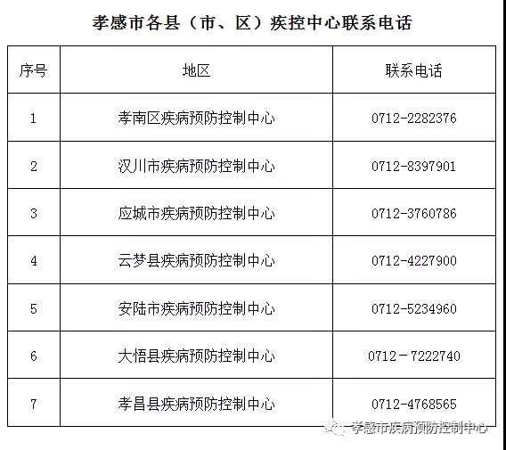 二、2021年5月1日(含)后来自广东省广州市荔湾区的来孝返孝人员,请主动到当地社区进行报备,并配合各县(市、区)疫情防控指挥部落实排查、核酸和抗体检测、隔离观察、健康监测等各项防控措施。如有疑问可拨打各县(市、区)疾控中心咨询电话(号码附后)。