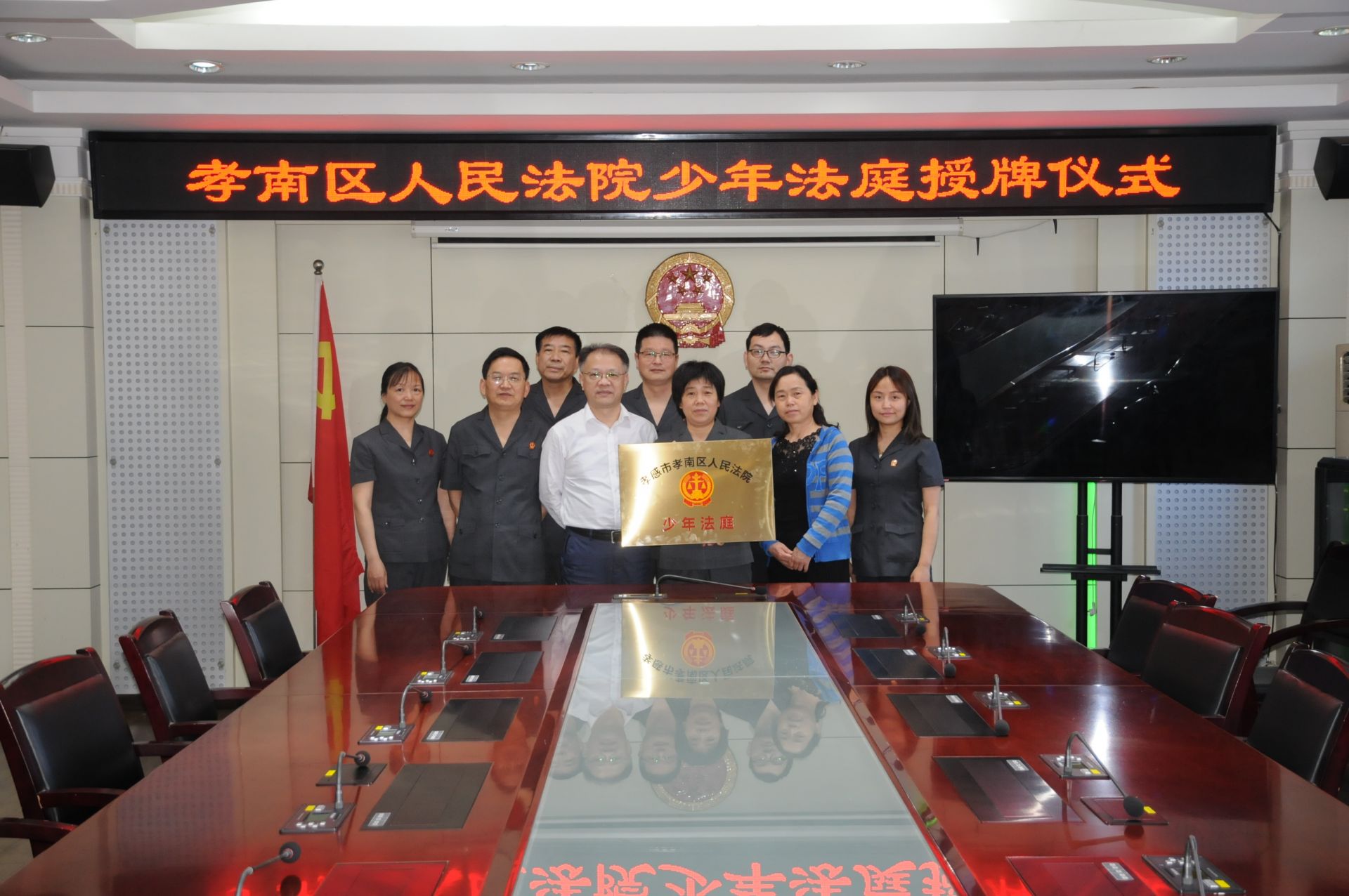5月18日,孝南区人民法院举行少年法庭授牌仪式,区法院党组书记、代院长肖国栋为少年法庭授牌,党组成员、副院长涂自敏及刑事审判庭全体干警参加仪式。