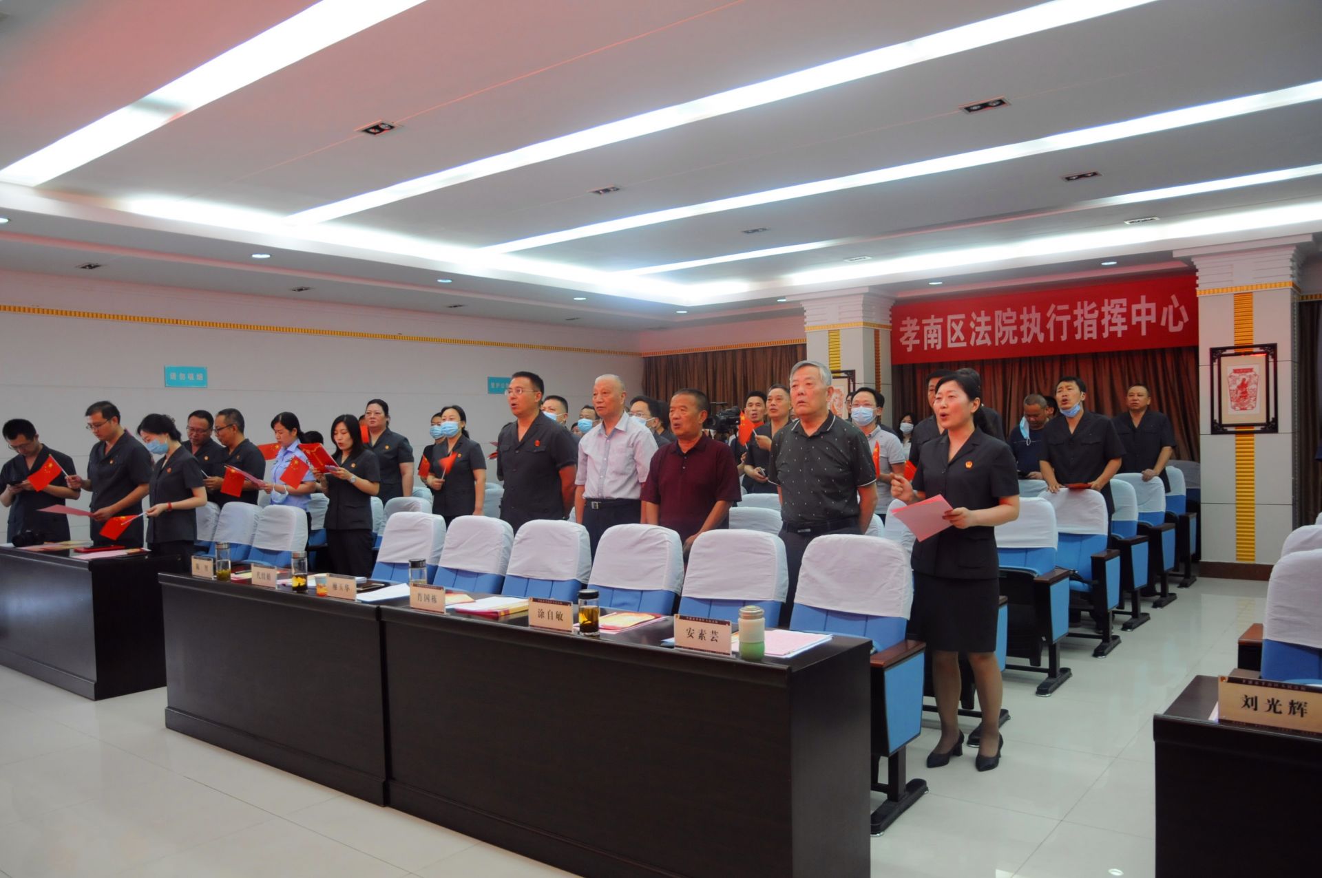 此次会议在全院干警的大合唱《没有共产党就没有新中国》中落下帷幕。铿锵嘹亮的歌声,蓬勃向上的朝气,干警们的爱国之情、圆梦之志洋溢在脸上,涤荡在心中。