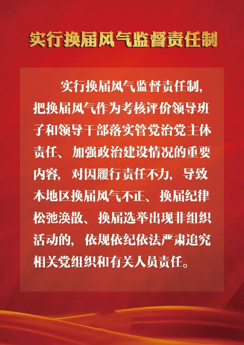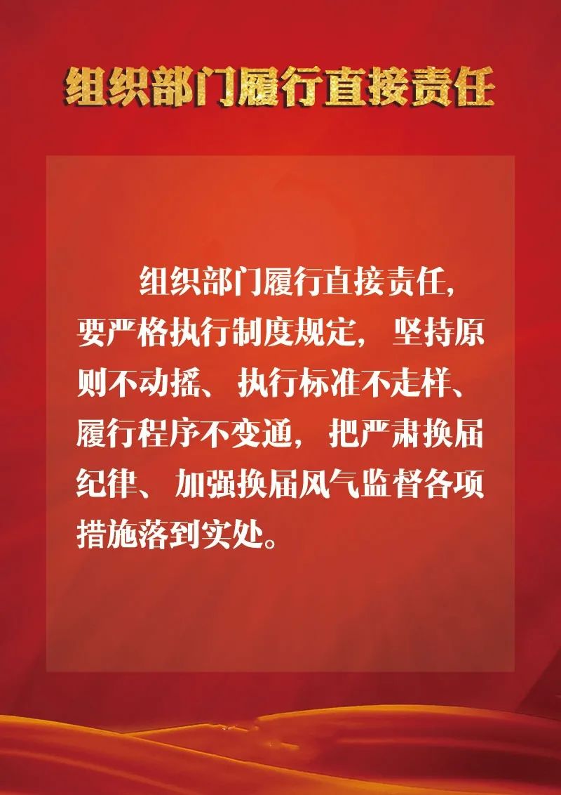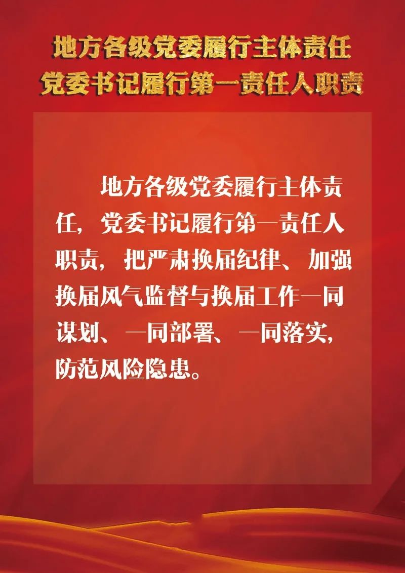 从2021年开始,地方各级领导班子将陆续进行换届。2021年1月,中共中央纪委机关、中共中央组织部、国家监察委员会联合印发了《关于严肃换届纪律加强换届风气监督的通知》。《通知》在如何从严落实换届责任方面做了明确要求。