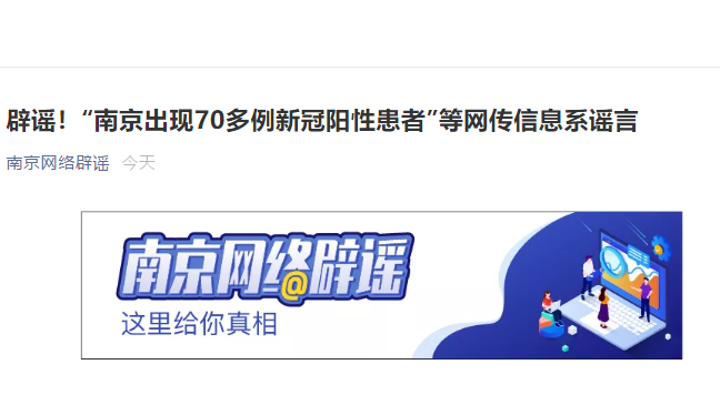 在南京积极应对突发疫情的同时,网络却出现一些不实信息,称“南京禄口机场发现确认病例,其密接者千余人中发现74例阳性患者”“新数据已逼近40人”“鼓楼医院查出30多个阳性”“已经70多(阳性)”等,均系谣言!