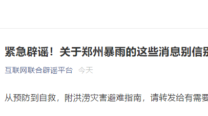 7月20日,紧急辟谣!网传“郑州进入特大自然灾难一级战备状态”,经核实为不实消息。