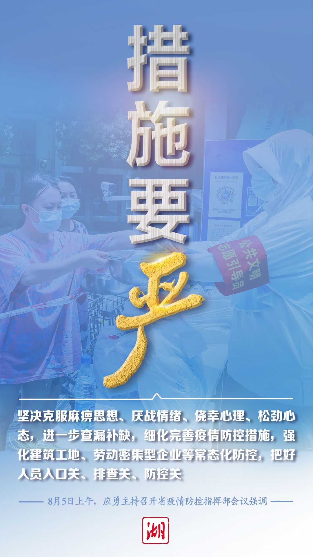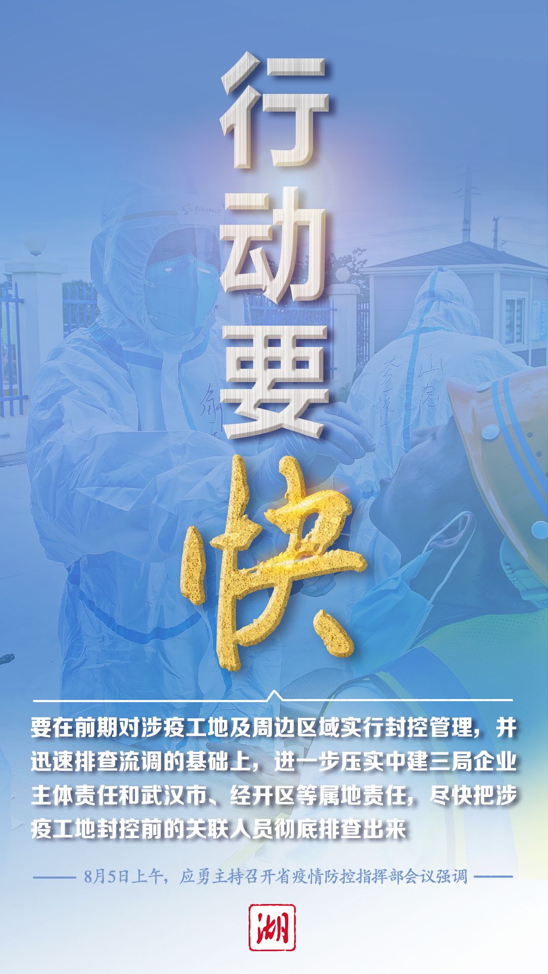 8月5日上午,省委书记、省疫情防控指挥部指挥长应勇主持召开会议,听取有关情况汇报,对全省及武汉市疫情防控工作再检查、再部署。