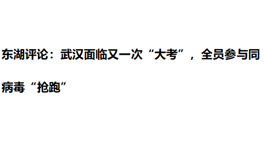 东湖评论:武汉面临又一次“大考”,全员参与同病毒“抢跑”