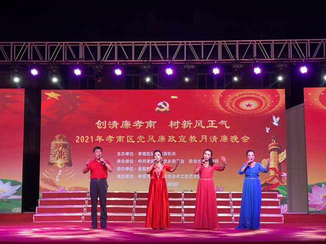 清风徐来丹桂香,秋夜金星美无双。9月24日晚7时,卧龙乡金星村综合文化广场上灯光璀璨、人头攒动,“创清廉孝南•树新风正气”廉政文艺晚会正精彩上演。区纪委监委各级领导、卧龙乡乡村两级干部、各村群众共400余人现场观看演出。