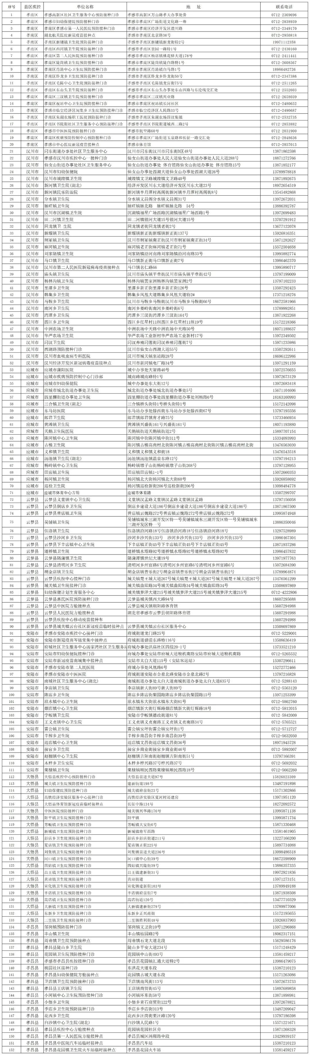 孝感市新冠病毒疫苗接种点一览表如下↓↓