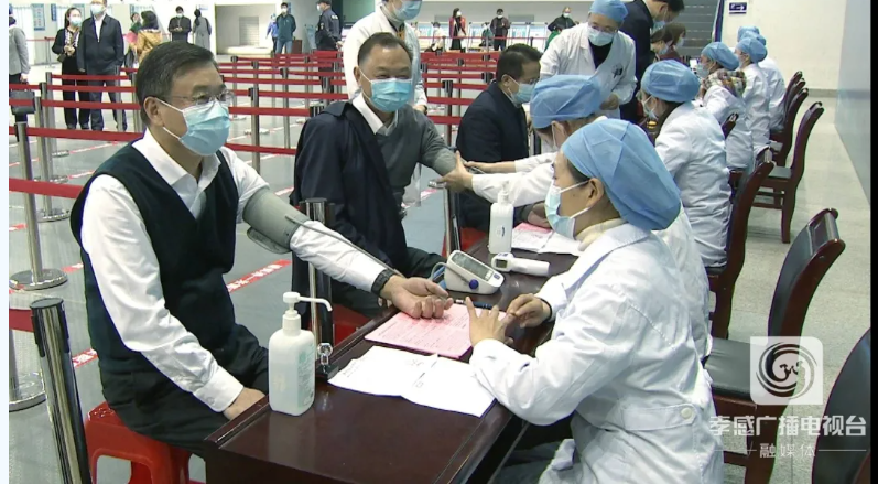 随后,市领导依次走进接种室接种疫苗,并在接种完成后,按照相关要求留观30分钟。