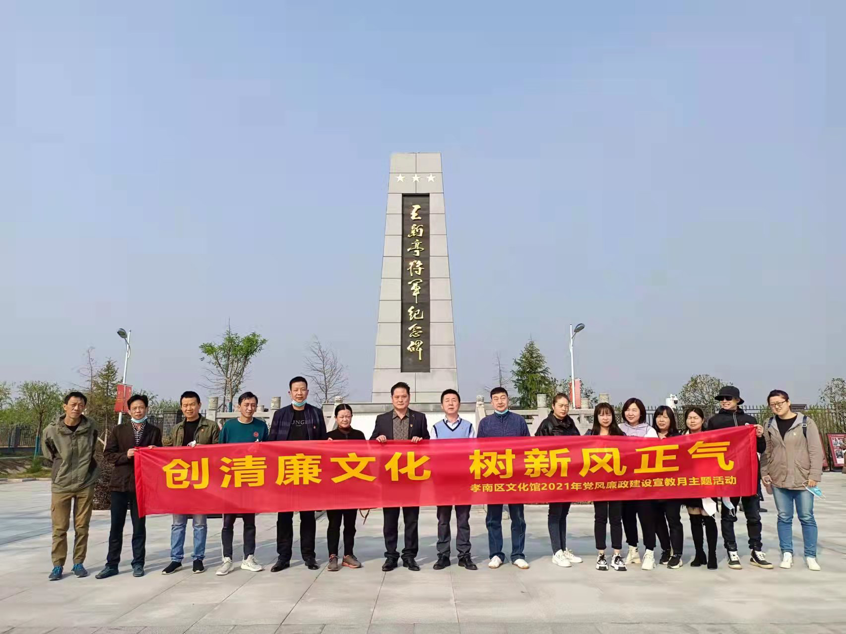 “参观王新亭将军红色教育基地、追寻红色革命足迹”。在孝南区朋兴乡王家岗村,大家走进王新亭将军故里,参观将军生平事迹陈列馆,观看历史图片、实物展品,重温了王新亭将军为革命事业所立下的赫赫战功,并在纪念碑面前重温入党誓词。通过参观学习,全体党员干部纷纷表示,要牢记光荣使命、坚定理想信念,以昂扬的精神状态、饱满的工作热情、务实的工作作风、开启孝南文化事业新篇章。