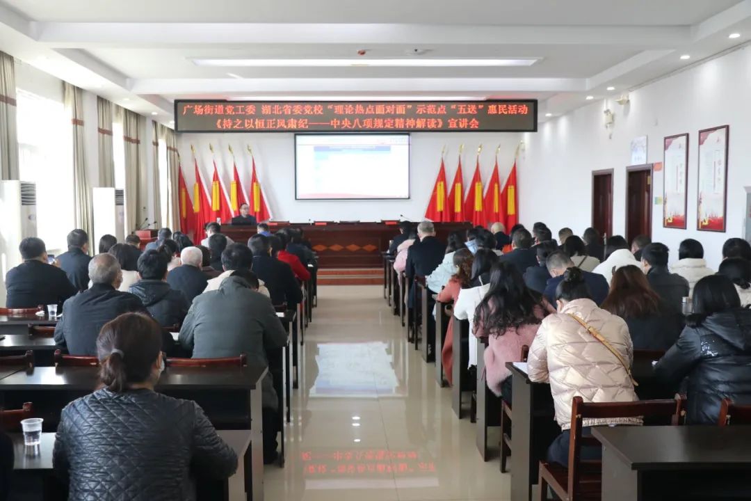 一、理论热点引人深省。早上九点,在广场街道的七楼会议室,一堂生动又发人深省的党课《持之以恒正风肃纪——中央八项规定精神学习体会》拉开序幕,能容纳近百人的会议室座无虚席,掌声不断,这是政法教研部副教授王辉结合实际案例为全街党员干部讲党纪法规。“王教授的宣讲有深度、有高度、有温度、通俗易懂,让我对中央八项规定精神有了更加深刻的理解,受益匪浅。”会后,广场街道一名街道干部说。