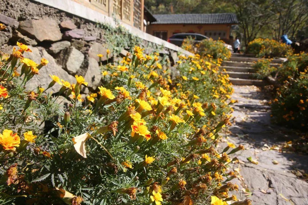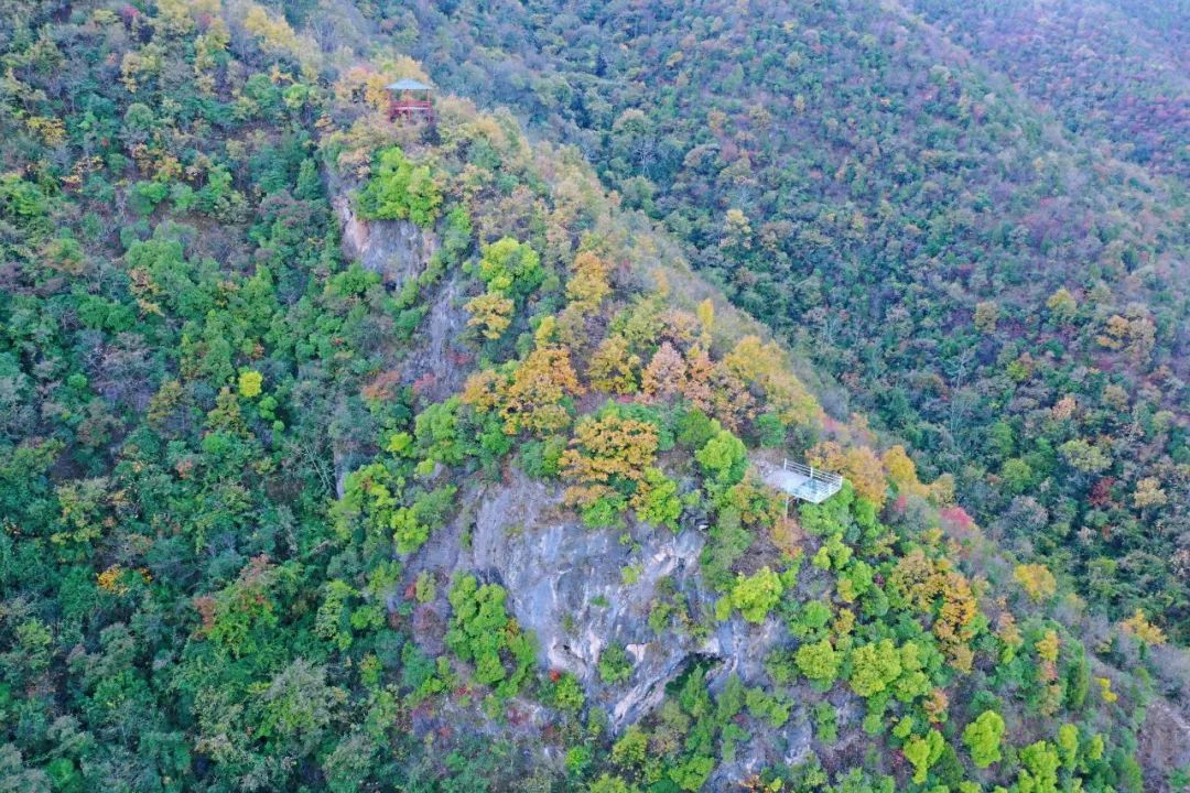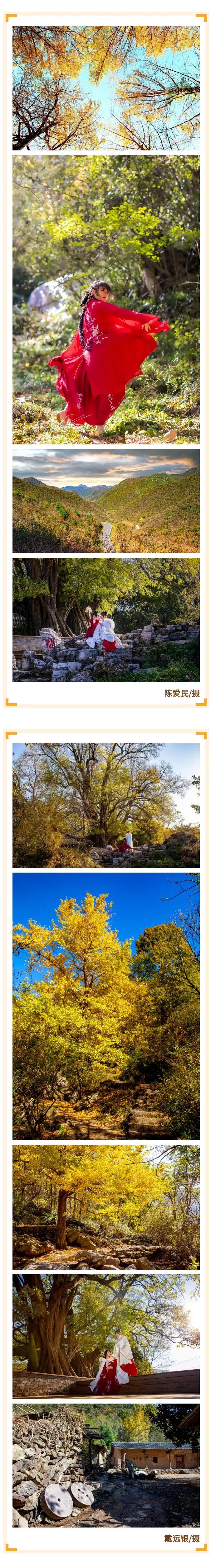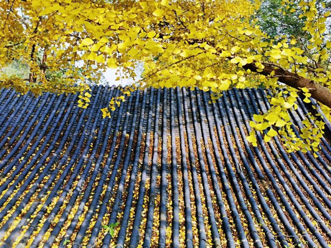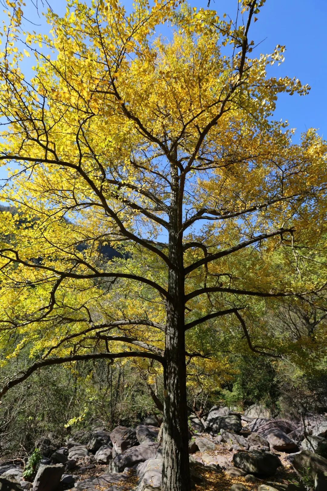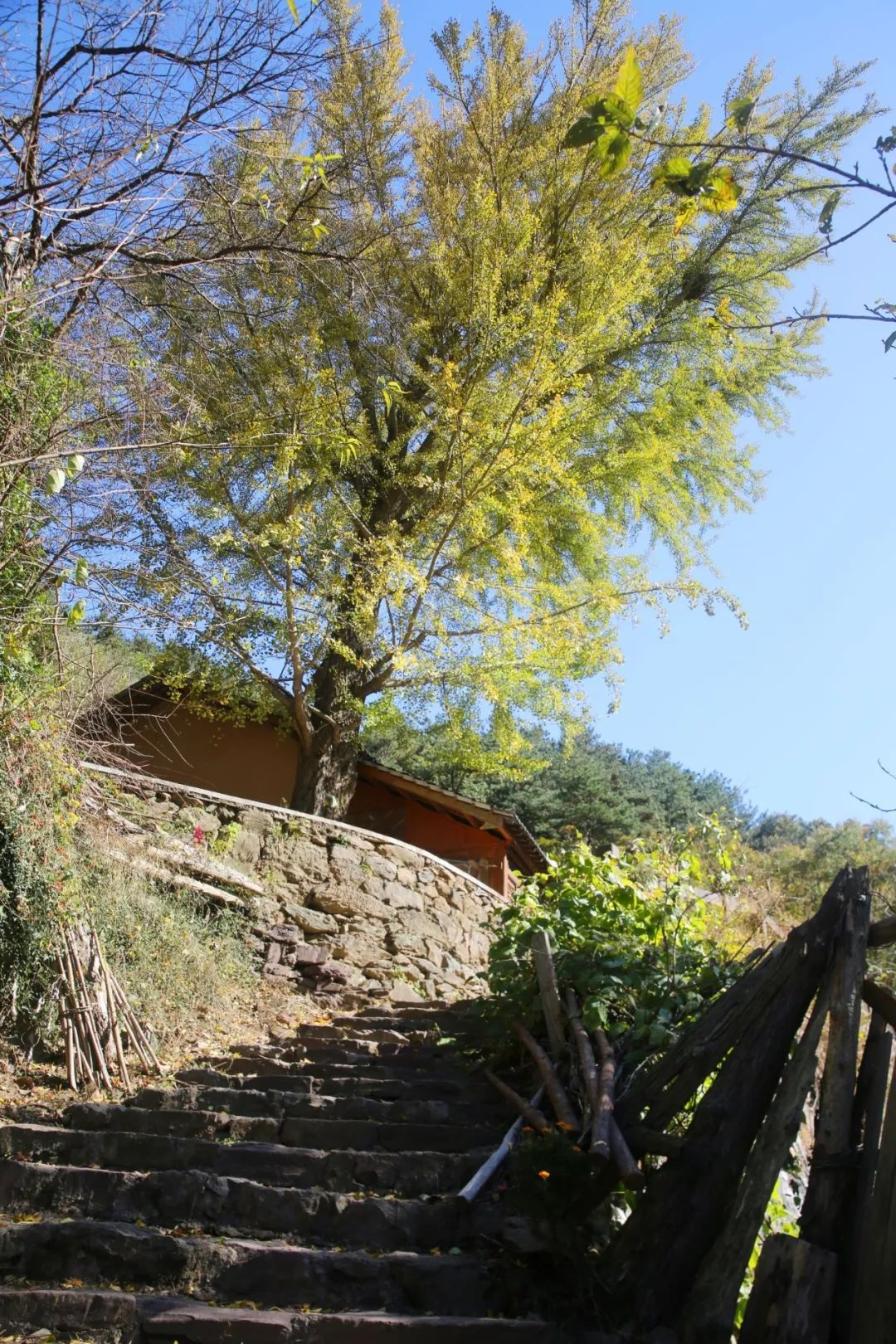 几百棵银杏树坐落于山间,放眼望去,皆是金黄,如同一副色彩鲜艳的油画。