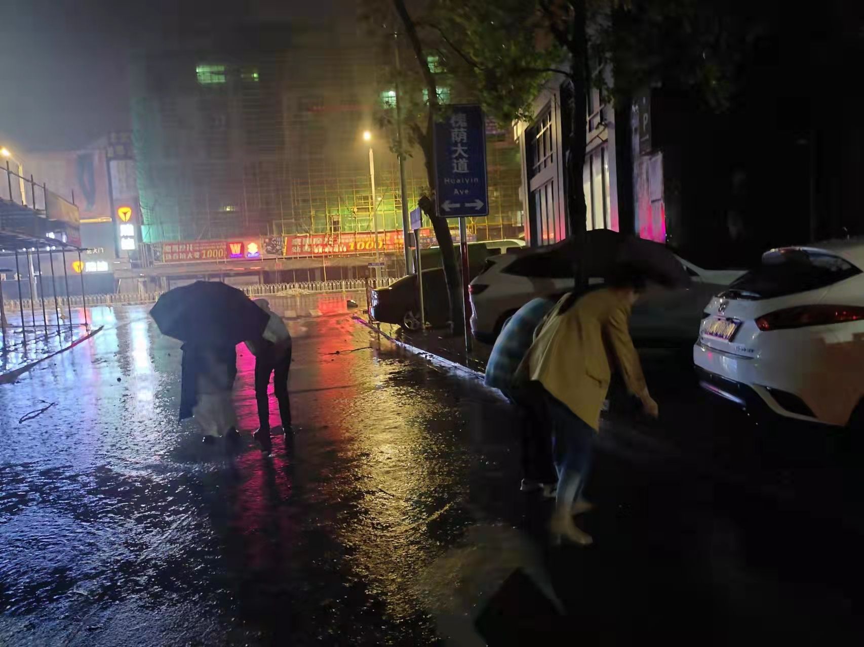 广场街道辖区内老旧小区较多,每次下大雨都是对小区内的防汛排涝应急措施的一次严峻的考验,雨情一到,广场街道启动防汛应急预案。深夜,社区工作人员在狂风暴雨中进行安全隐患排查,积水严重的地方甚至没过了小腿,他们重点查看了小区低洼积水、房屋漏水、用电安全等情况,发现落叶导致部分雨水收口堵塞,就徒手清理收口处淤积的树叶和垃圾,确保排水通畅,对于面积较大的积水点,现场查看原因,联系有关单位,请专业人员进行处理;同时提醒居民做好防御强降雨措施,注意雨天用电安全。社区工作人员不顾连夜的疲劳和身上浸透的汗水和雨水,克服困难,穿梭在积水严重的小区地段,尽最大努力降低暴雨带来的损失,保证小区居民的人身财产安全和日常出行便利。