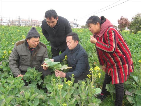 人勤春来早,孝南区朋兴乡沈新村种田大户张德田正在乡农技人员的指导下学习如何对油菜进行科学施硼肥。
