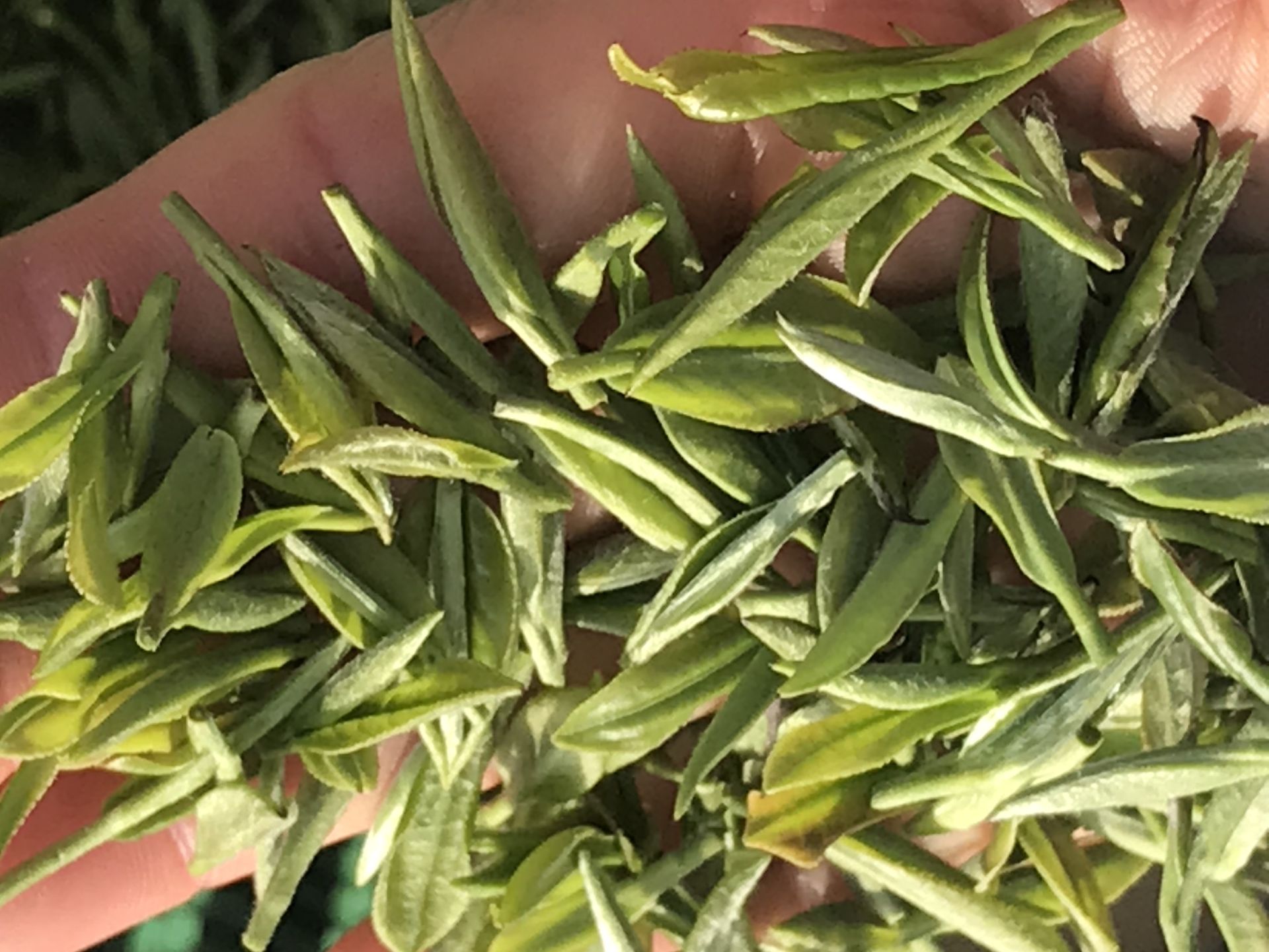 图为翟岗新村熊家山茶叶基地新茶采摘现场
