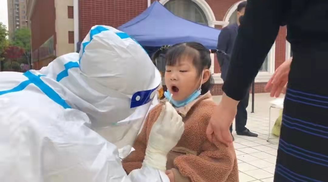 在新华街道某小区附近的幼儿园核酸检测现场,勇敢又可爱的小萌娃们,有序地保持着一米距,认真配合检测,据街道包保干部介绍:“根据全区安排,必须在十二点之前完成全体学生的核酸采集工作。该幼儿园的师生共计190人,争取在一个小时内完成全部采集任务,已为学生提前准备了电子健康卡静态码,方便学生做完核酸后能迅速离开。”