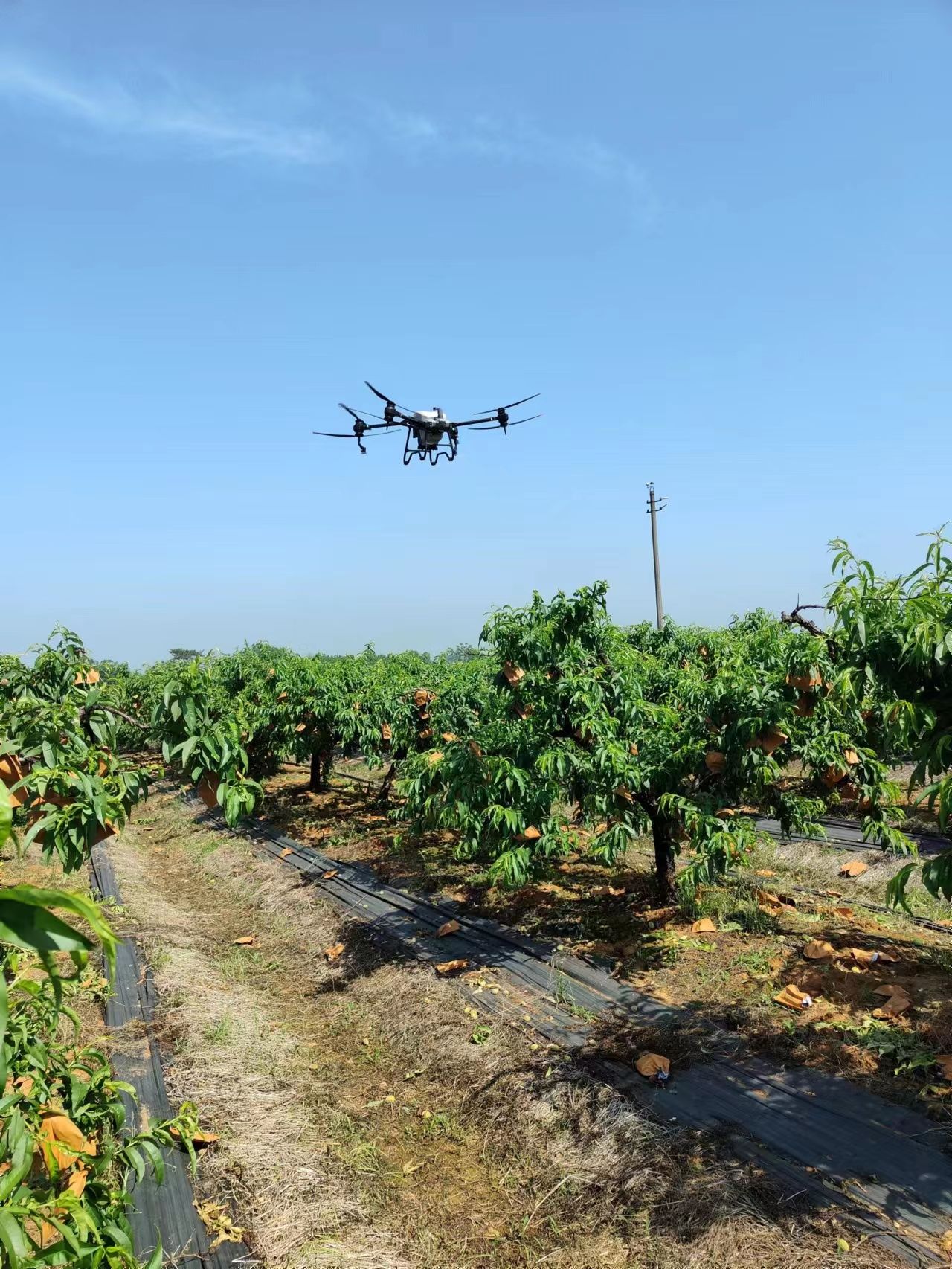 杨店的桃子一直是周边城市受欢迎的明星果品,五月底又是早蜜桃集中上市的时节。此时保护桃树不生虫、不生病,把好桃子成熟上市最后一关显得尤为重要。据了解,区供销社飞防队使用的是大疆T40无人机对桃树进行飞防作业,这是杨店镇桃园首次迎来植保无人机喷施叶面肥。同时,该机是目前无人机飞防作业最先进的机型,风力大,智能识别程度高,能有效解决果树病虫防治中背叶防治不到位问题。