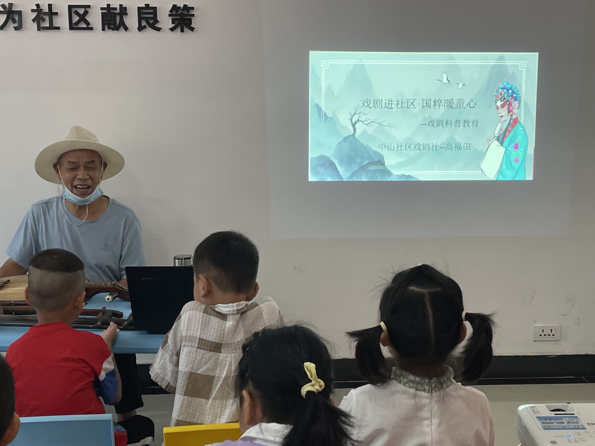 戏剧是我国非物质文化遗产的重要组成部分,是中华传统文化的瑰宝,为弘扬中华传统优秀文化,推动戏曲传承发展,提升辖区儿童的人文素养,7月15日上午,孝南区中山社区彩虹行动迎来了一堂特殊的课堂—戏剧教学,此次戏剧课堂邀请到了社区戏曲组织负责人高福田老师。