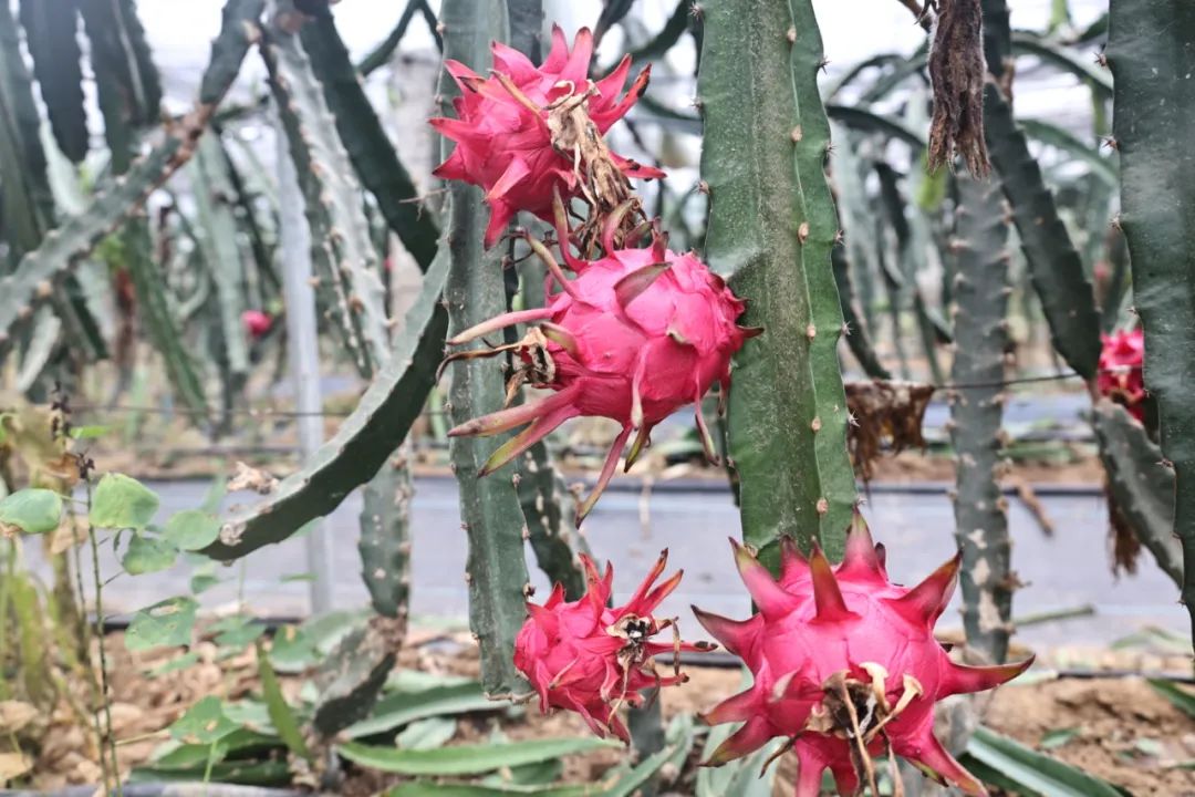 “我们农场的火龙果,种植中不使用杀虫剂,不添加激素,纯有机栽培,口感清甜,每年从5月份开花结果,一直可以持续到11月份,欢迎大家前来采摘。”7月21日上午,在陡岗镇军里村惠康种养生态农场,种植户程少清在火龙果大棚买对前来采摘的游客开启了“直播”模式。