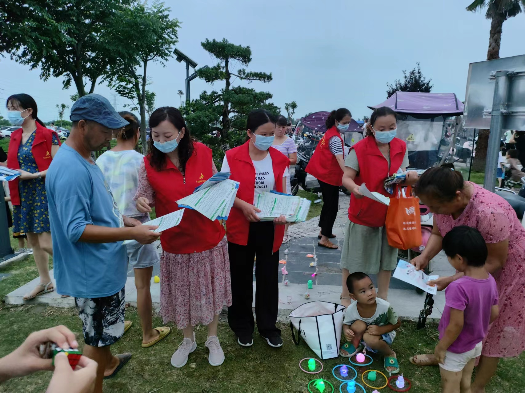 夏日傍晚的肖港镇新时代文明实践广场景色宜人、人头攒动,欢笑声、歌舞声此起彼伏,热闹非凡,在人群中来回穿梭的一件件“红马甲”更是一道道靓丽的风景线。肖港镇巾帼志愿服务队正在这里为群众开展下基层、察民情、解民忧、暖民心活动,来自镇妇联、综治、卫健等单位部门的妇女干部结合自身岗位职责各显神通。