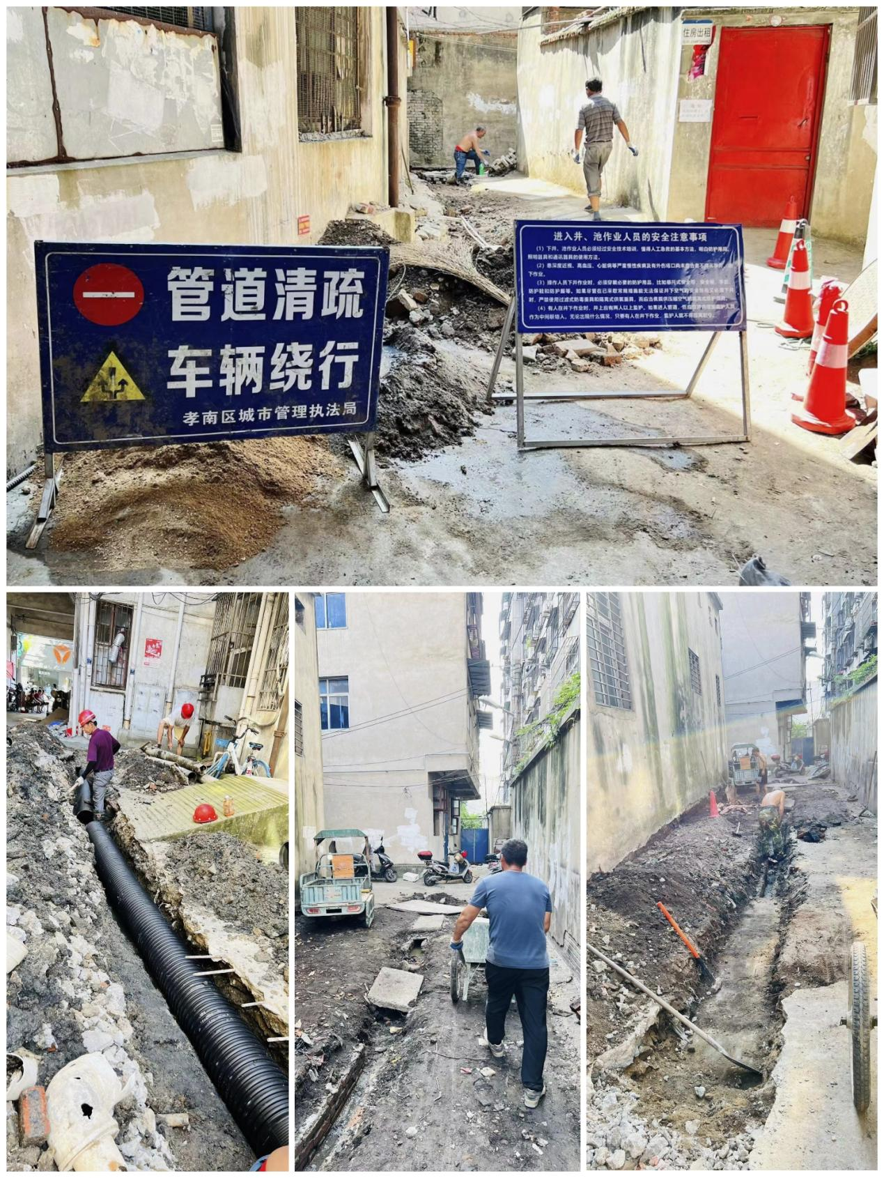 施家塘小区由于管网建成年代时间较早,管道排污口较细,加上管理不善,配套设施损坏,无法满足极端天气雨量的排放。尤其是近两年院内积水愈发严重,给小区居民的生活和出行带来极大不便。孝南区城管执法局市政设施园林绿化服务中心工作人员了解这一情况后,对施家塘的雨水管网多次进行清淤疏浚,渍水情况依然存在。为着力解决民生疼点问题,该局党组高度重视,主动作为,组织专班到现场实地查看,为施家塘社区争取专项改造资金,迅速对该路段排水管网进行改造。在最短的时间内,解群众之忧,排群众之难。