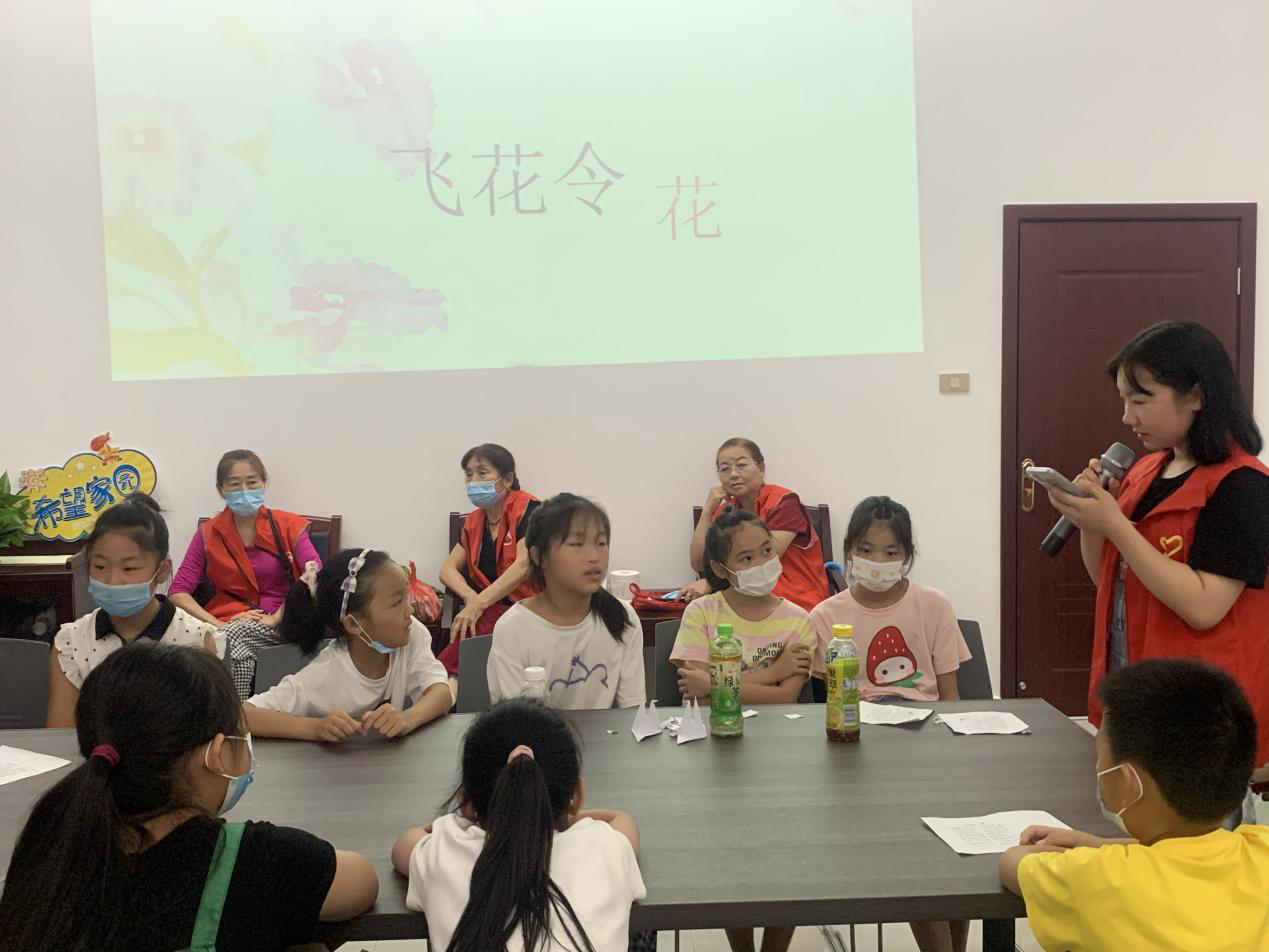 另一边,其他几位学员和小朋友们比起了飞花令,这场比赛既考验诗词储备量,又需要临场应变能力,从一个“春”字开赛,到“花”字角逐,最后以“月”字为总决赛的主题,小朋友们你背一首诗,我说一首词,最终星火村的两位小朋友嬴得了冠军。