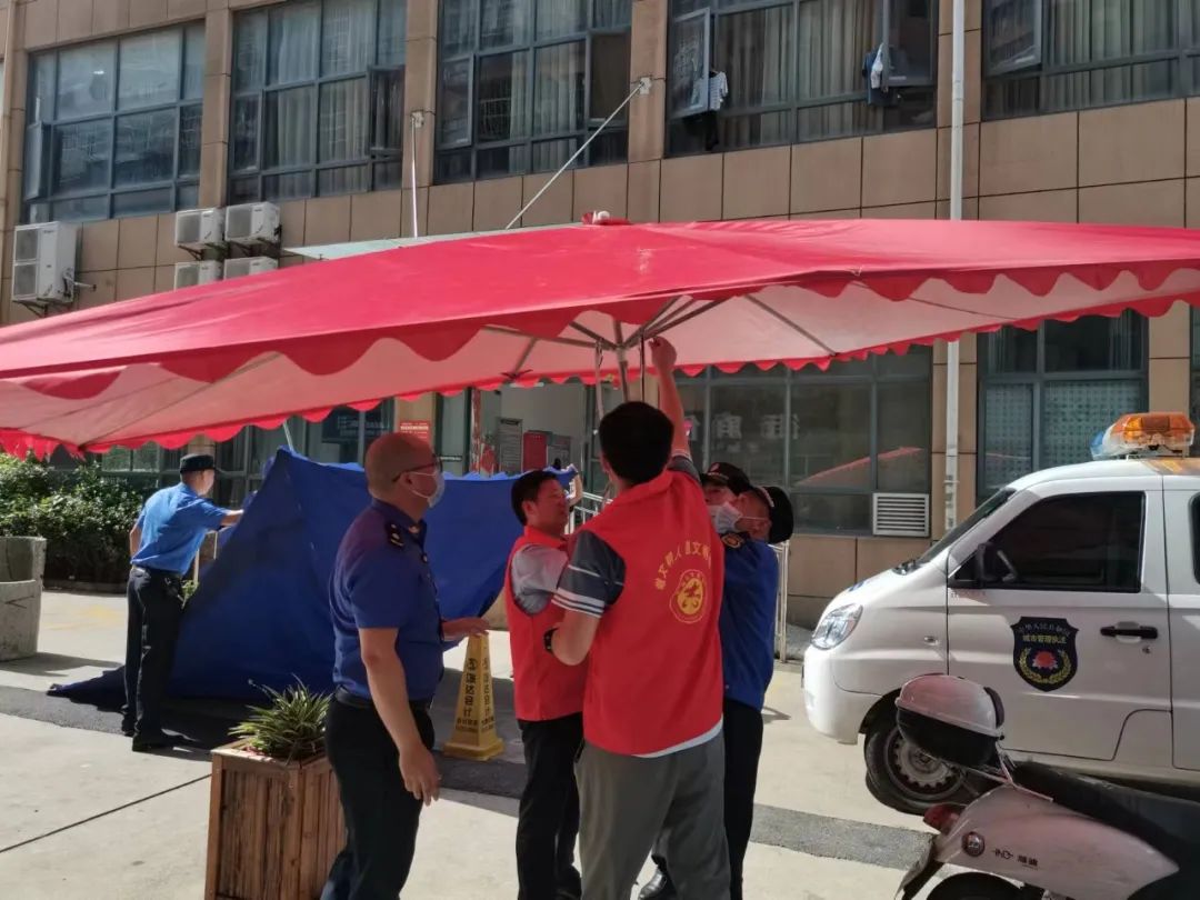 “看把伞放哪个位置适合,先拿过去撑开试一下。””必须要用石墩子来固定,我们先把石墩子移过去。”近日,在航空路的澴川书房外面,孝南区城管执法局的城管队员边说边将两把大号太阳伞从车上拿下来,又将两个水泥墩子移到书房外面的书桌旁,用于固定伞杆。